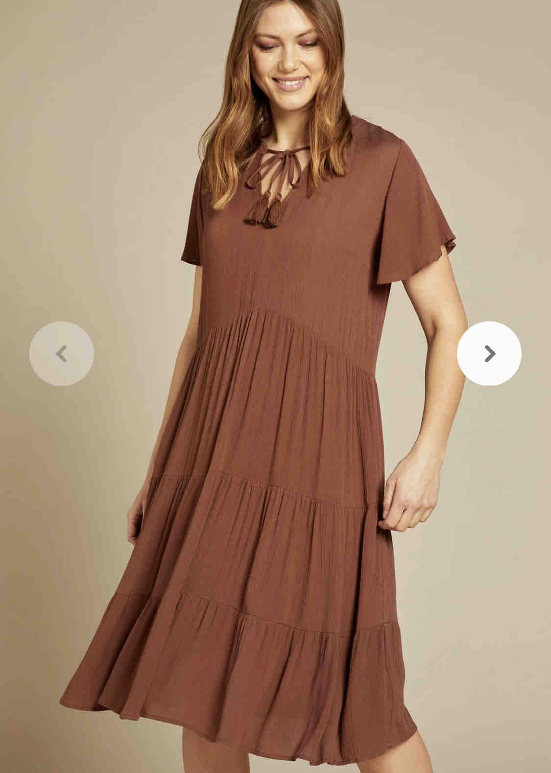 • Abito in creponne di viscosa con svasatura a balze.