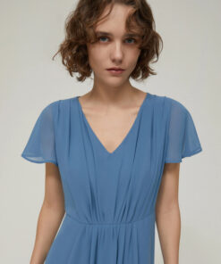 • Scollo a V, maniche corte a volant