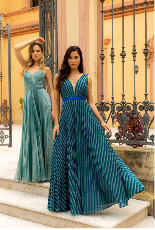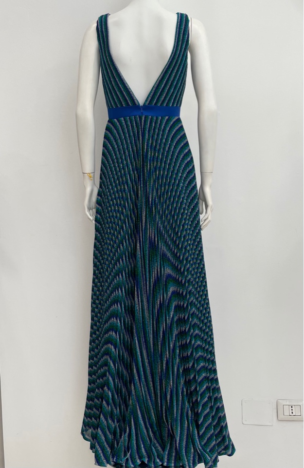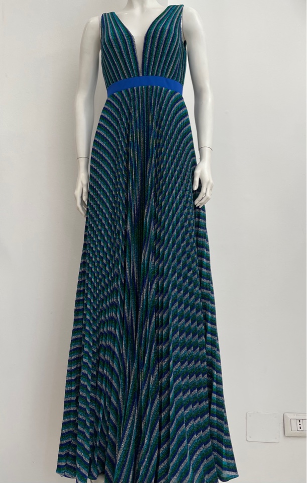 i colori del pavone danno a questo abito un effettto ottico in movimento,