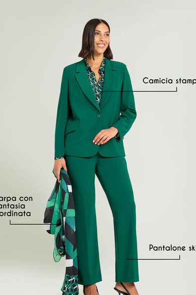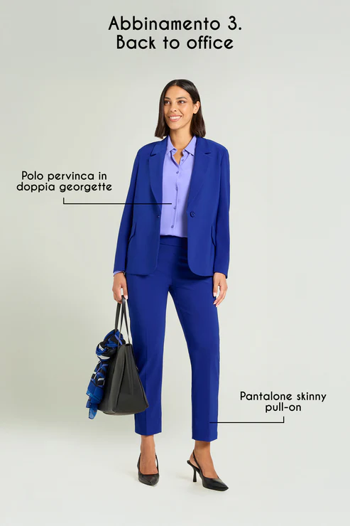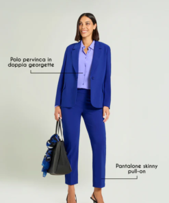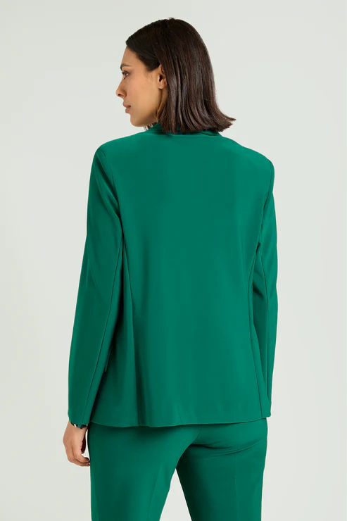 Blazer elasticizzato realizzato in compatto stretch. Linea leggermente sciancrata, collo e rever, chiusura con un bottone, pattine, sfoderato. Abbinabile anche a completo con pantaloni in collezione P859F e P860F