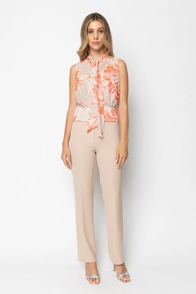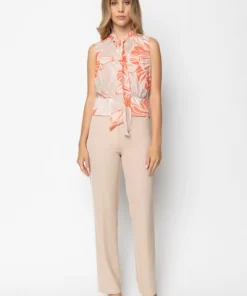 Un colorato racconto astratto anima questo top definito da chiusura laterale con cerniera e foulard finemente cucino nel capo. Vestibilità regolare. Made in Italy.