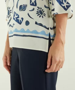 • Blusa stampata in giavanese dalla linea fluida diritta, con spacchetti laterali.