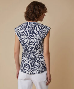 • Stampata con motivi di conchiglie che creano una fantasia grafica,