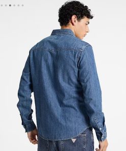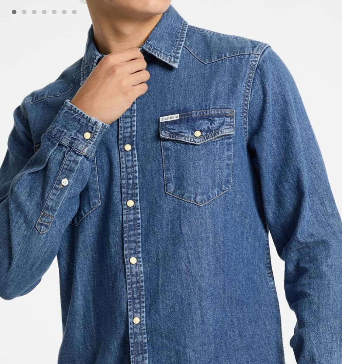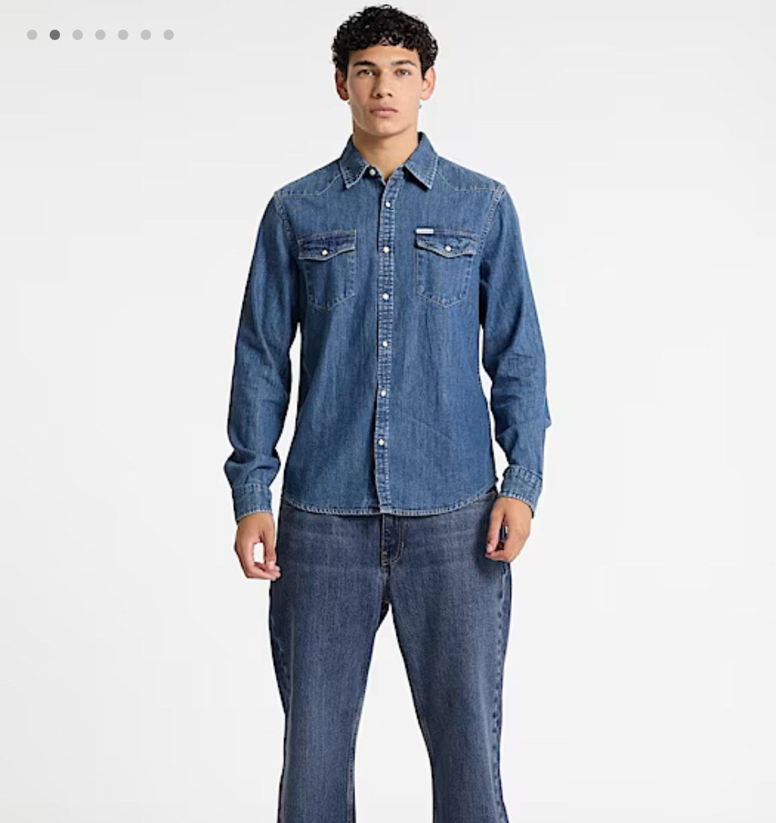 Camicia in denim elasticizzato, vestibilità slim. manica lunga. taschine con pattina sul petto. abbottonatuta a clips. polsino con bottone, Camicia in jeans di misto cotone.