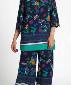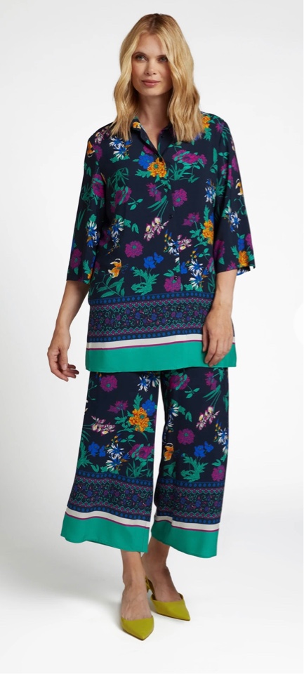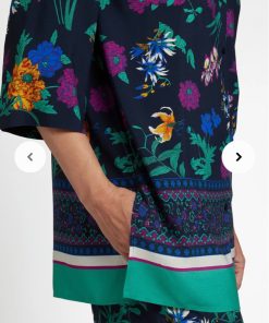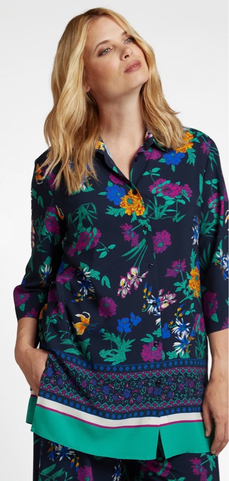 Camicia lunga in viscosa con stampa a bordo piazzata