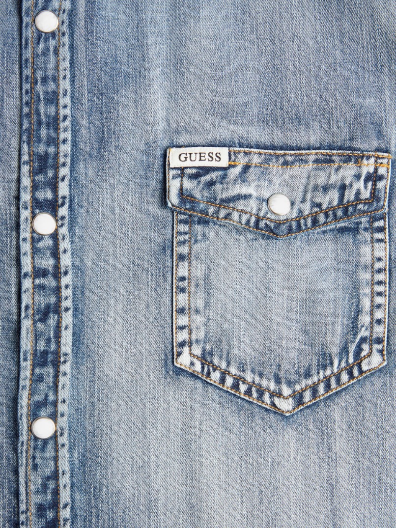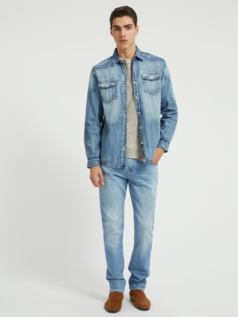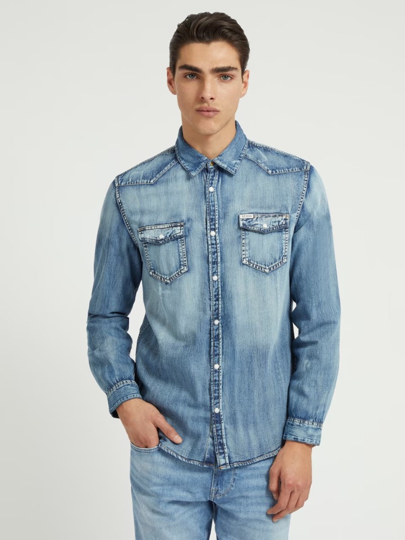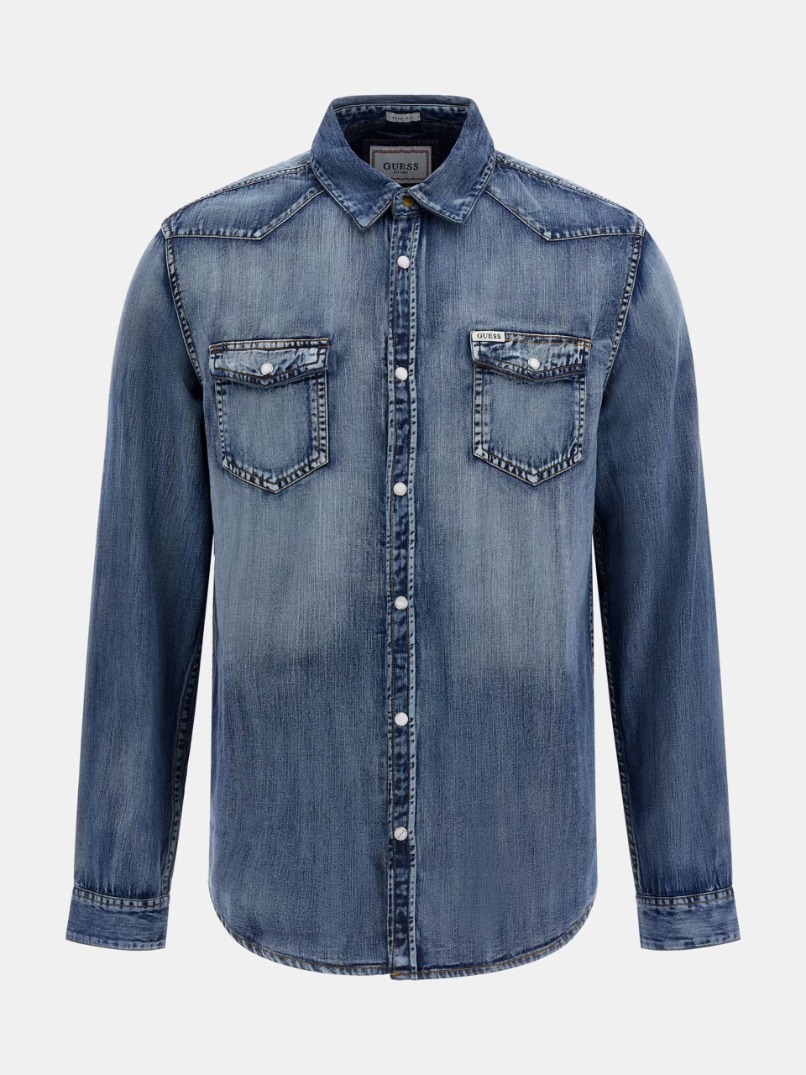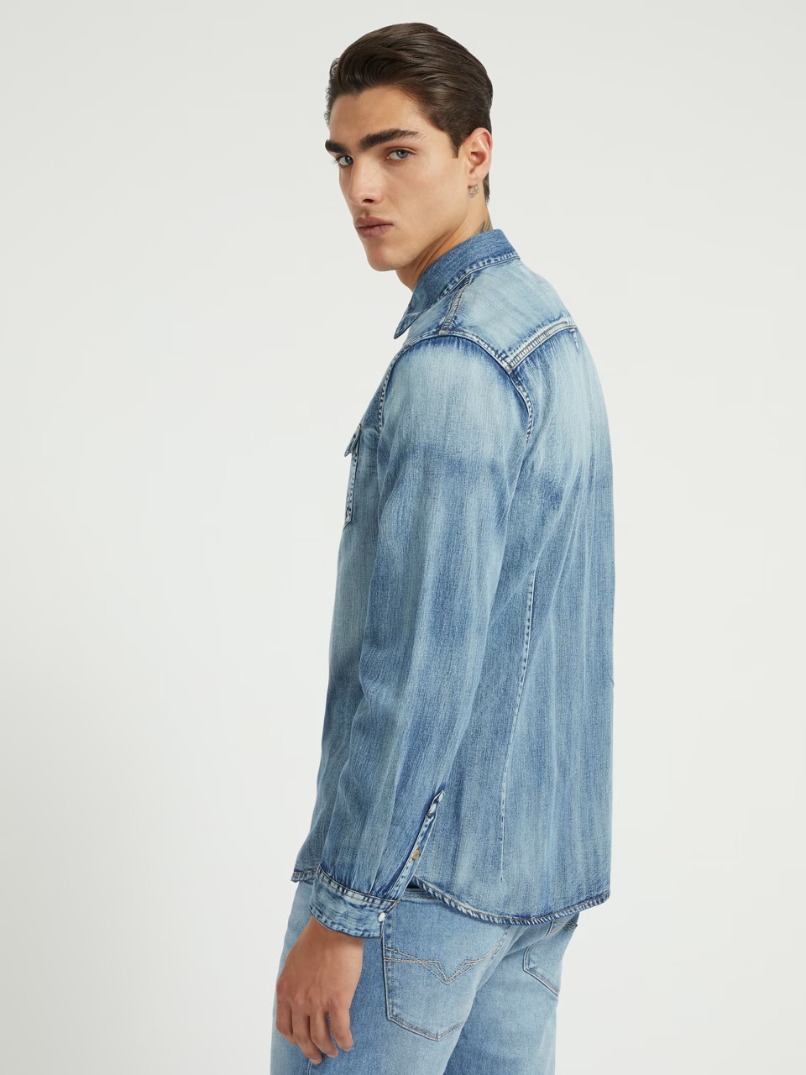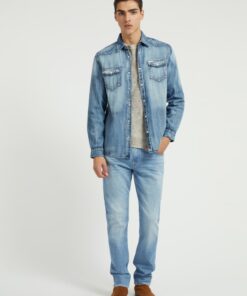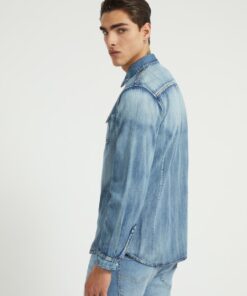 - Camicia in jeans di cotone. Colletto classico. Manica lunga. Vestibilità slim. Chiusura con bottoni