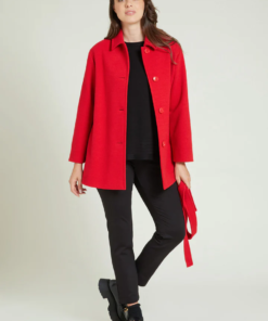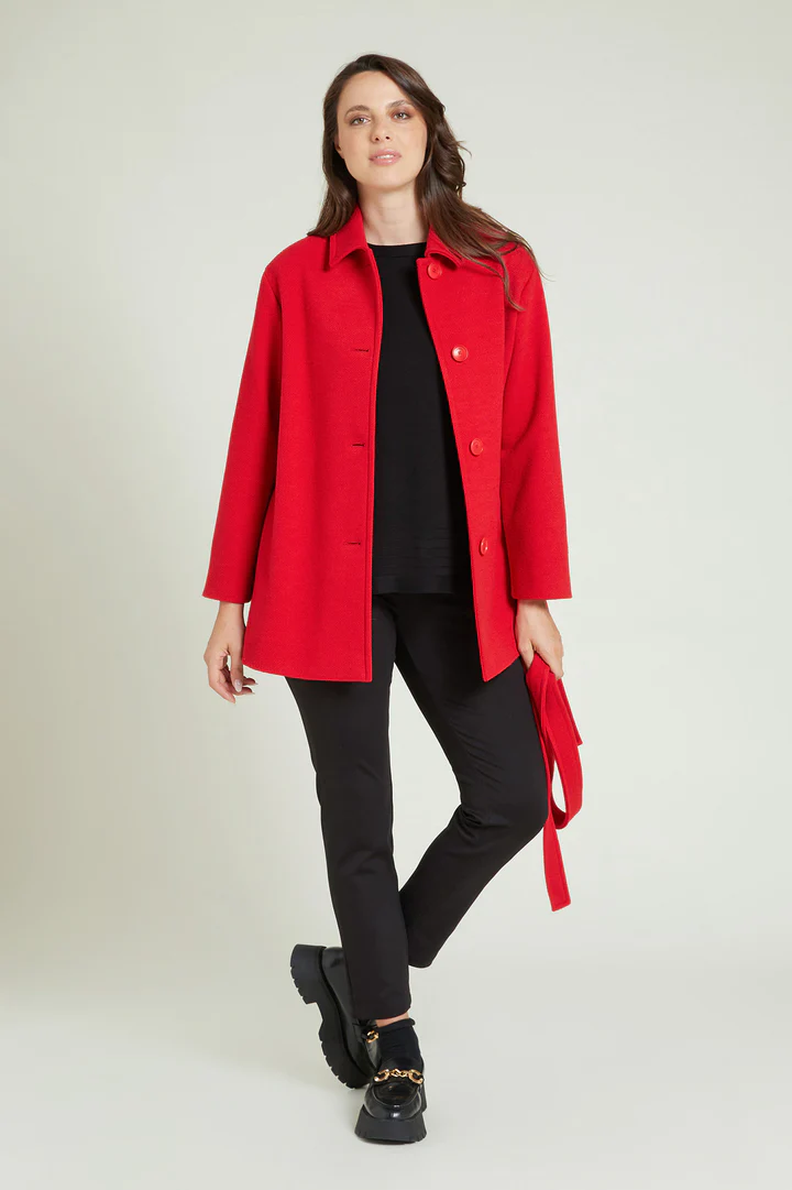 • Cappotto in tessuto diagonale dalla linea svasata.