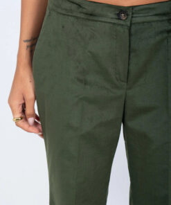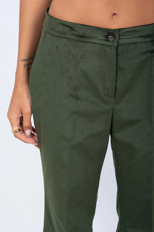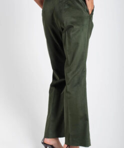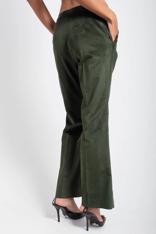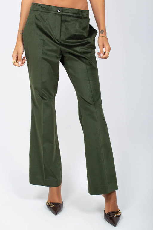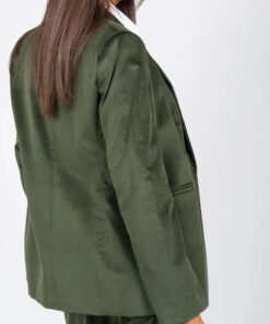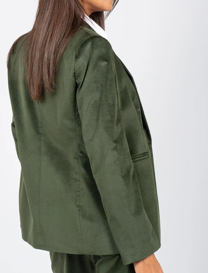 Completo giacca e pantalone in velluto liscio, vestibilità slim, pantalone leggermente a zampa con tasche laterali.