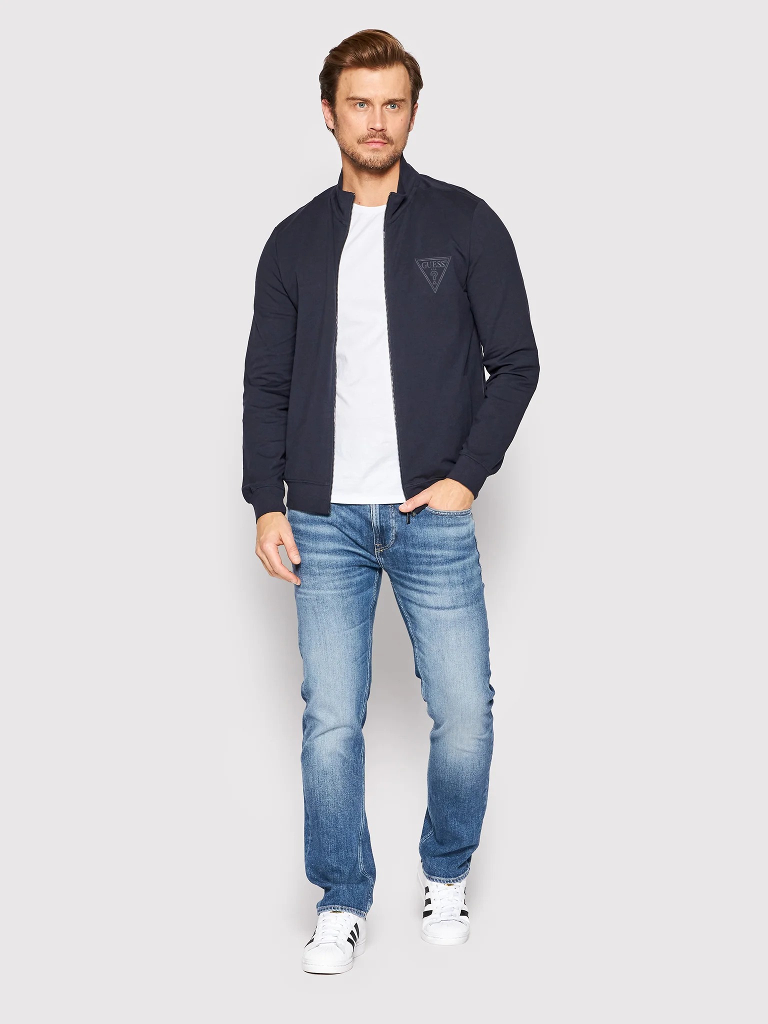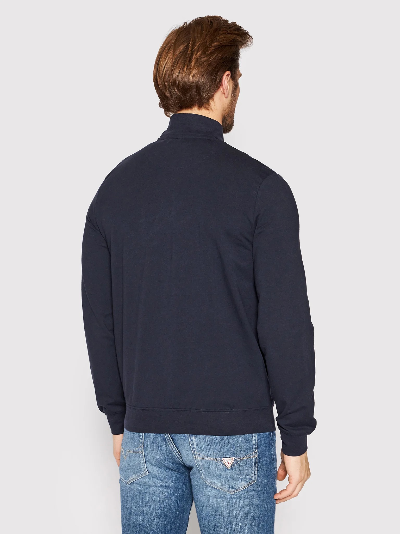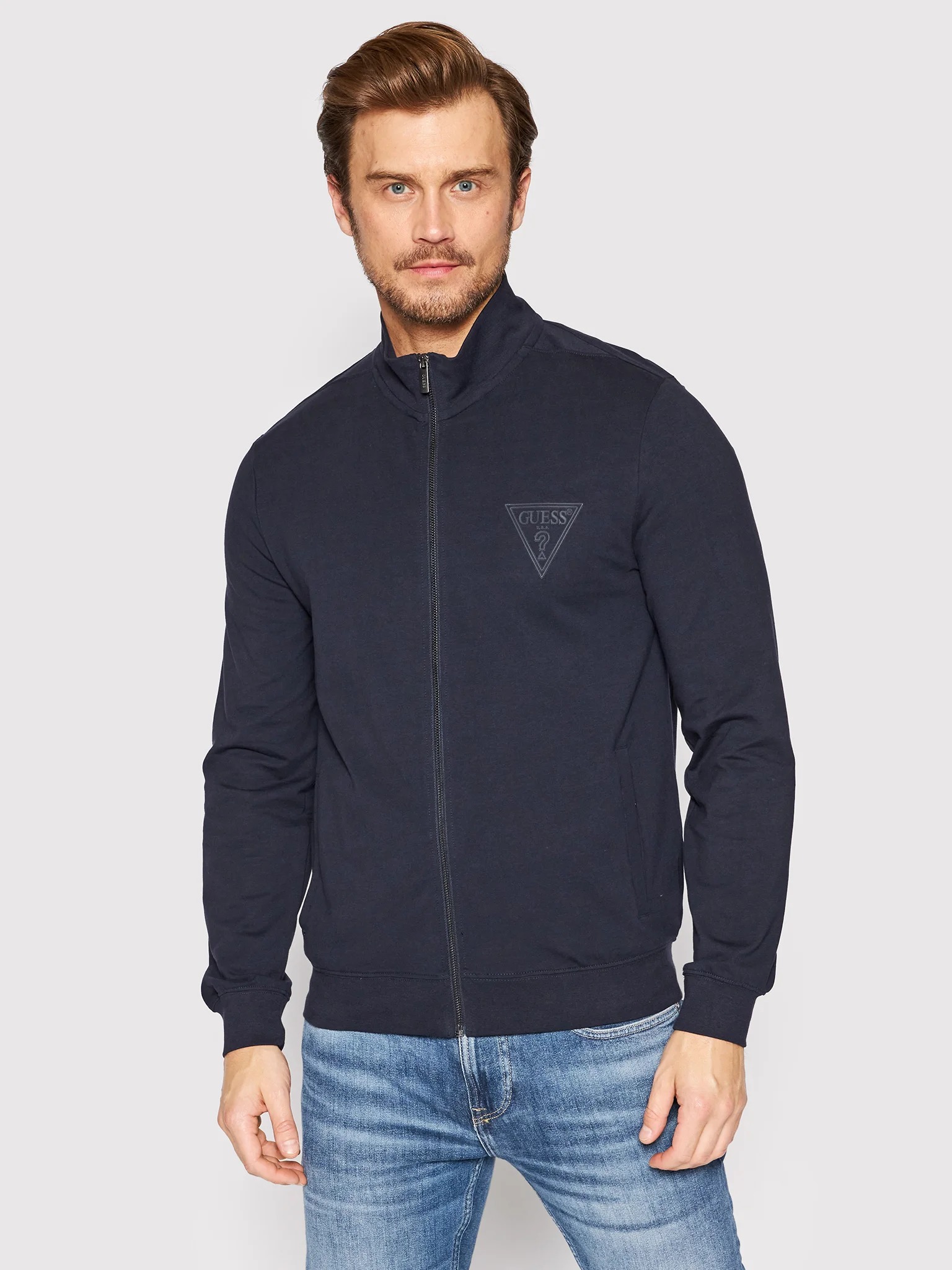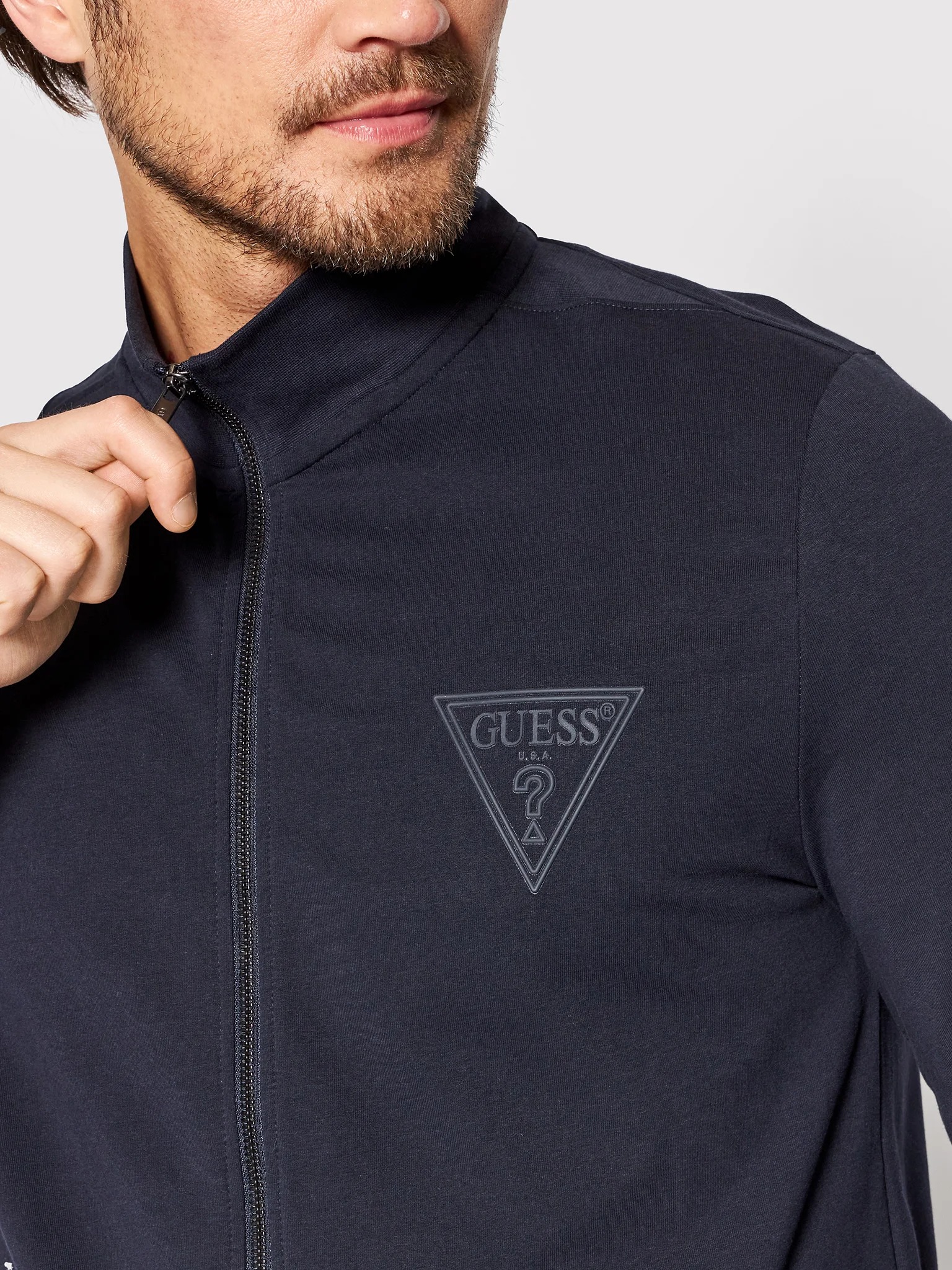 felpa in cotone garzato, con zip, manica lunga e colletto rialzato.logo stampato con materiale gommato , elastico ai polsini e in vita , vestibilità slim.
