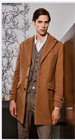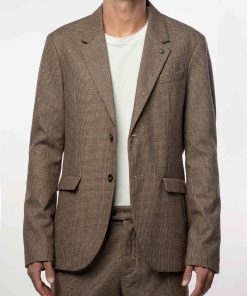 - Giacca a due bottoni con davanti sfilato e doppio spacco
