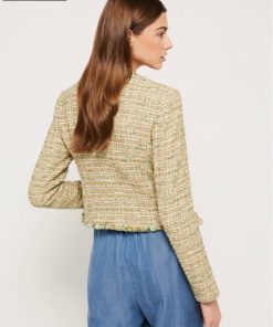 • Giacca in stuoia di cotone e lamé, con scollo rotondo,