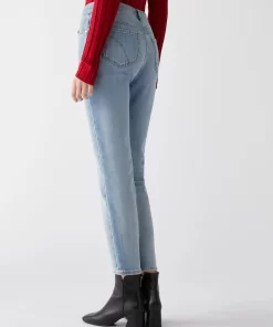 • In denim comfort, hanno un taglio slim fino al ginocchio e leggermente svasato al fondo,