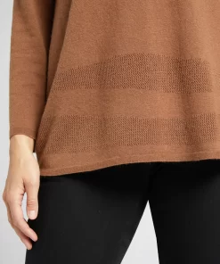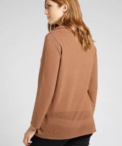 Maglia in filato misto cachemire, finezza 12, dalla linea diritta con una lunghezza che copre il bacino. Punto rasato, ampio collo ad anello. Sul fondo motivo ad onda punzonato.