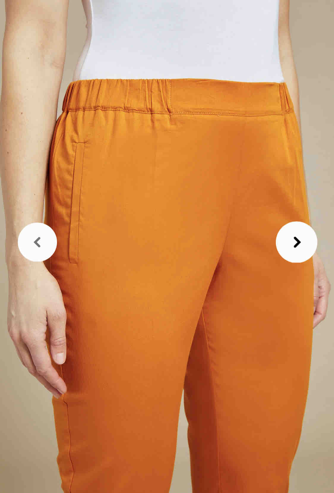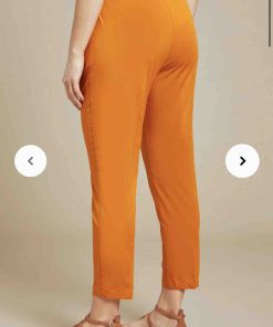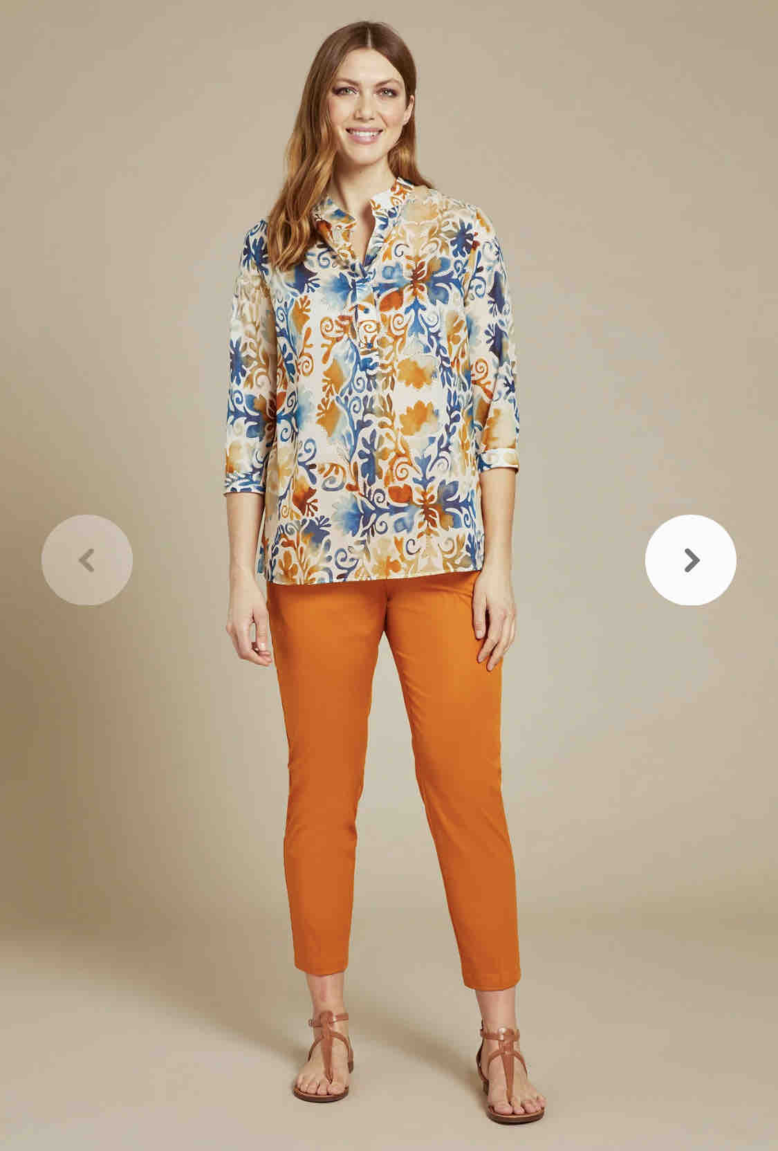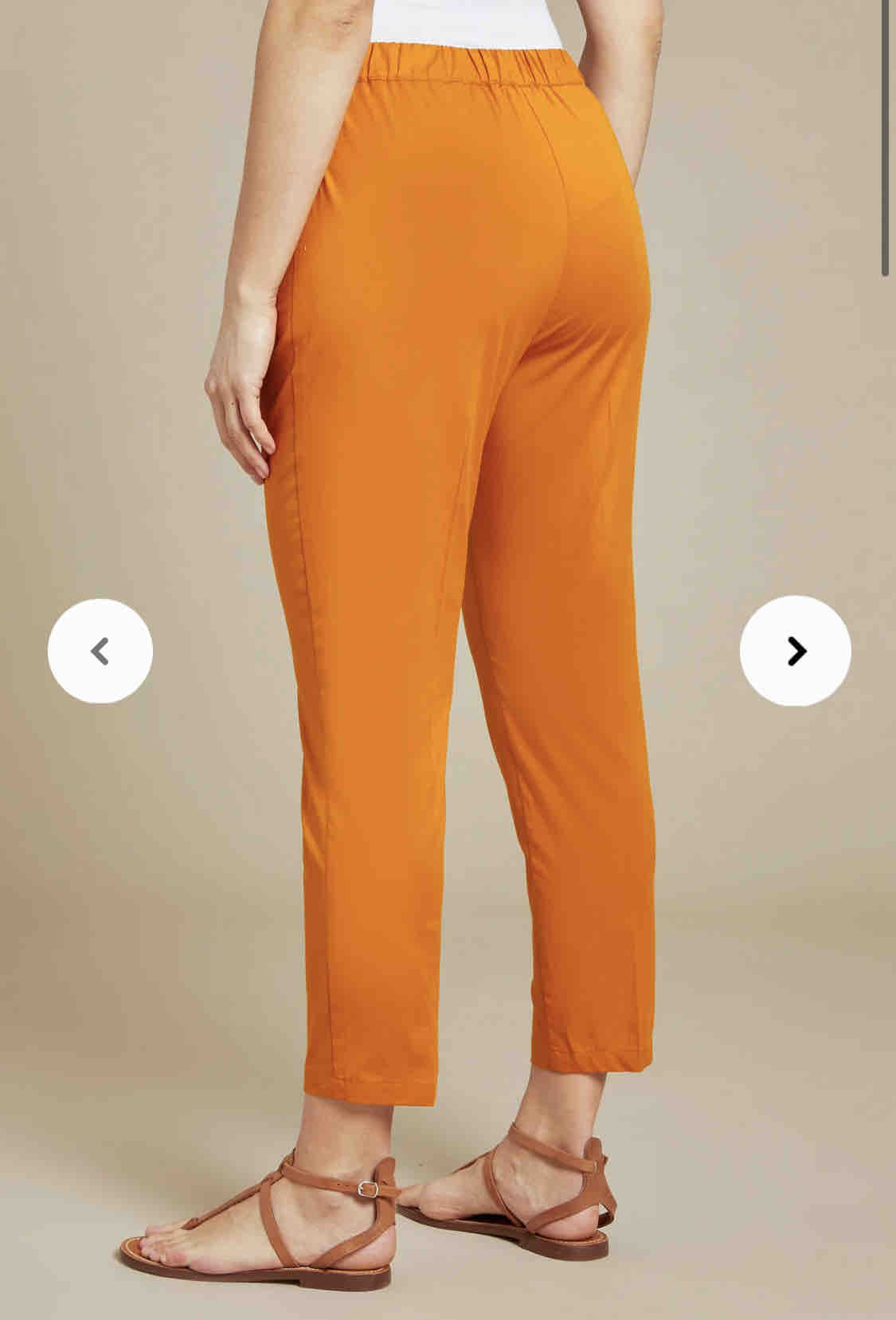 .Il grande lavoro delle modelliste di Luisa Viola consiste nell’adattare le linee trendy alle esigenze della nostra cliente, con un lavoro di fine tuning ed armonia. In questo caso, ad esempio, l’idea del pantalone carrot ha avuto una sua evoluzione: eliminate le pinces a sbuffo, la morbidezza è stata ottenuta da un elastico inserito nel cinturino, con l’accortezza di non arricciare la parte centrale. Disponibile nel color curcuma e in blu, il risultato è un pantalone moderno, adatto a tutte le taglie.