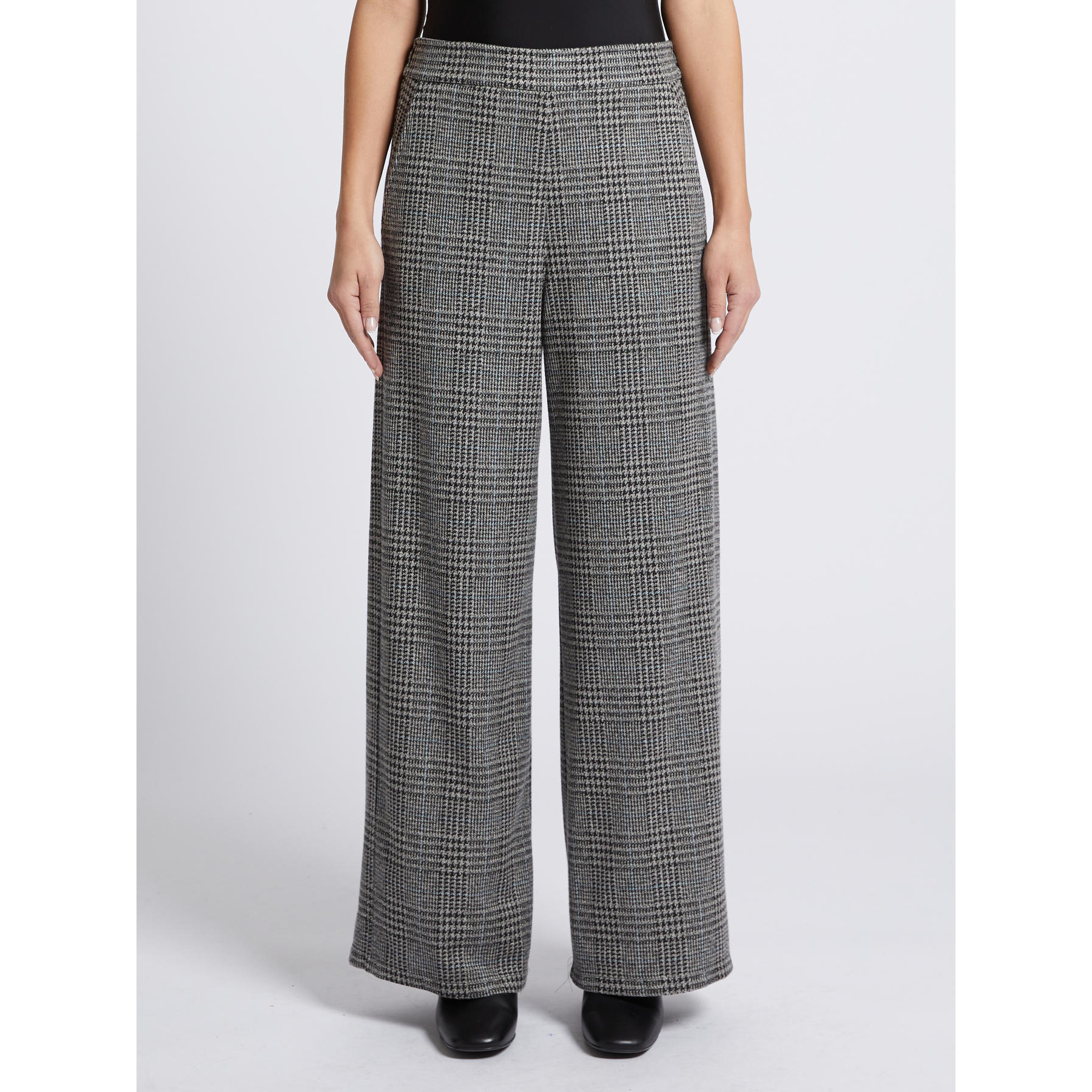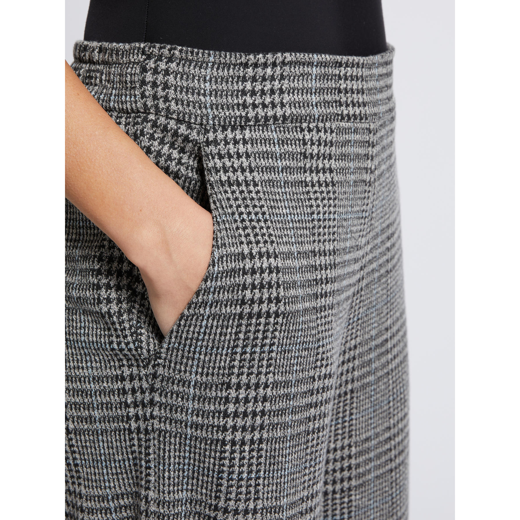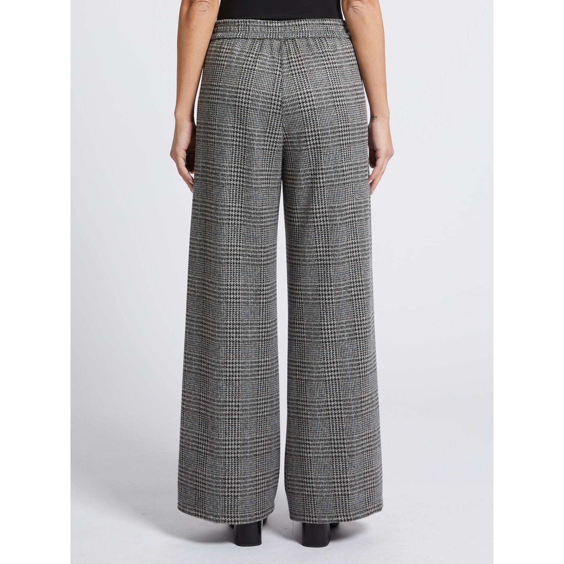 Pantaloni in jersey tinto filo dalla linea ampia. Vita con elastico sul retro, tasche alla francese. Lunghezza 102 cm.