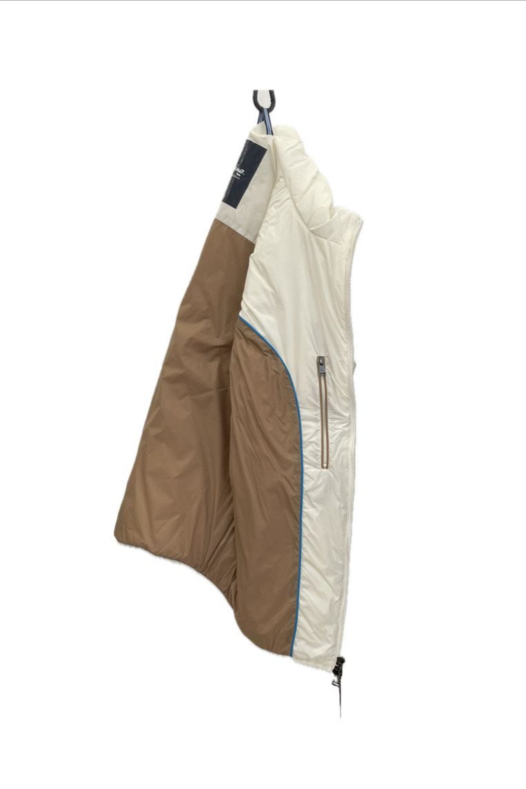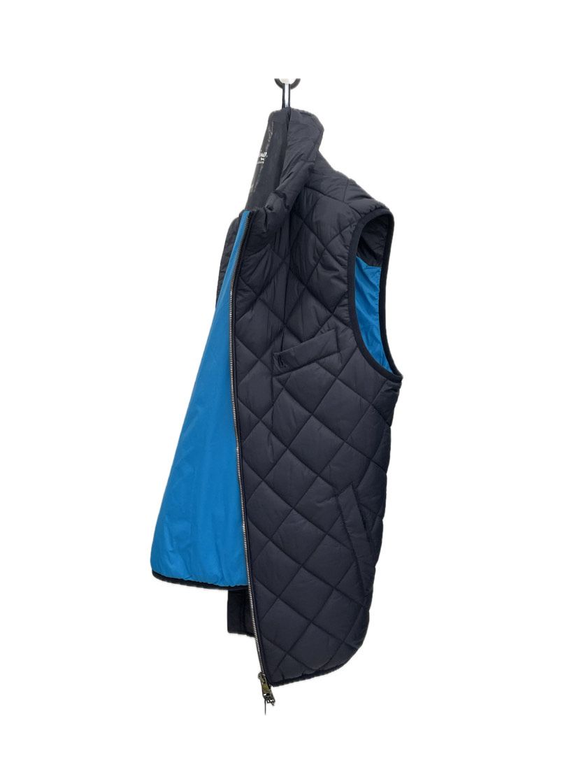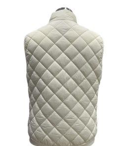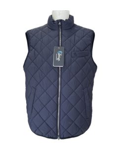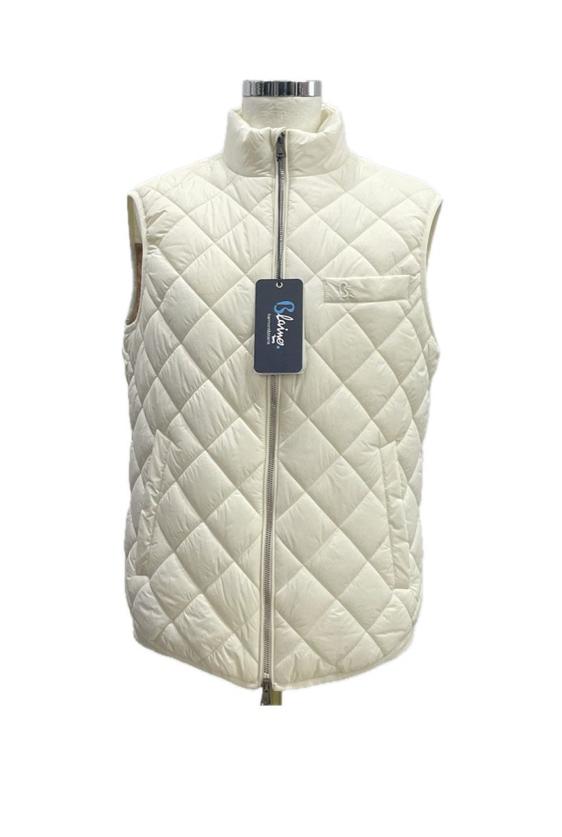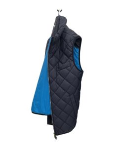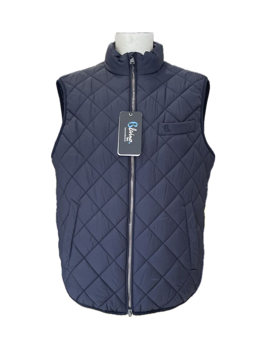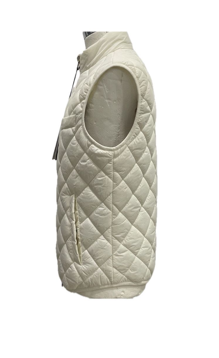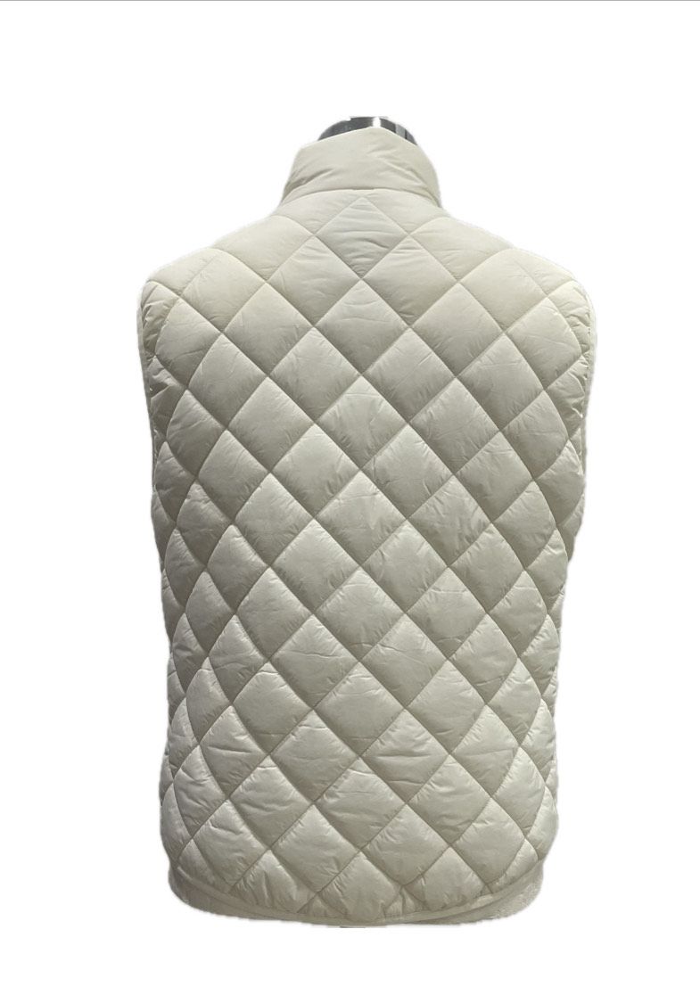 trapuntina smanicato , imbottito con cuciture romboidali disponibile in due colori..chiusura con zip a doppio cursore.tasche sul davanti, taschino sul pettorale.e taschino con chiusura zip all’interno .Fodera interna a contrasto.